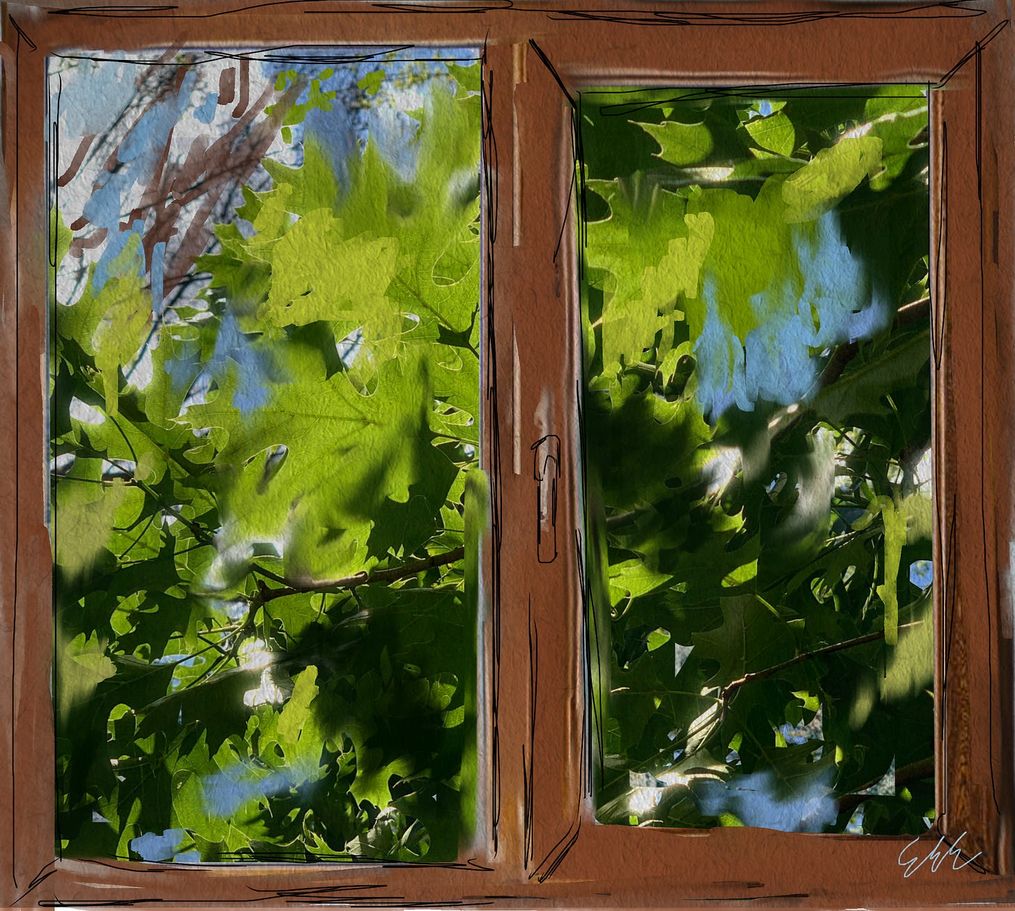 I have never seen so much color. Looking out of the window is like looking at a super saturated, edited photograph. Except the photograph moves, ever so slightly, as the bright buds and lime green leaves or blades of grass quiver in the breeze. And the space where blue sky meets the lime green and yellow leaves is a feast for my eyes.